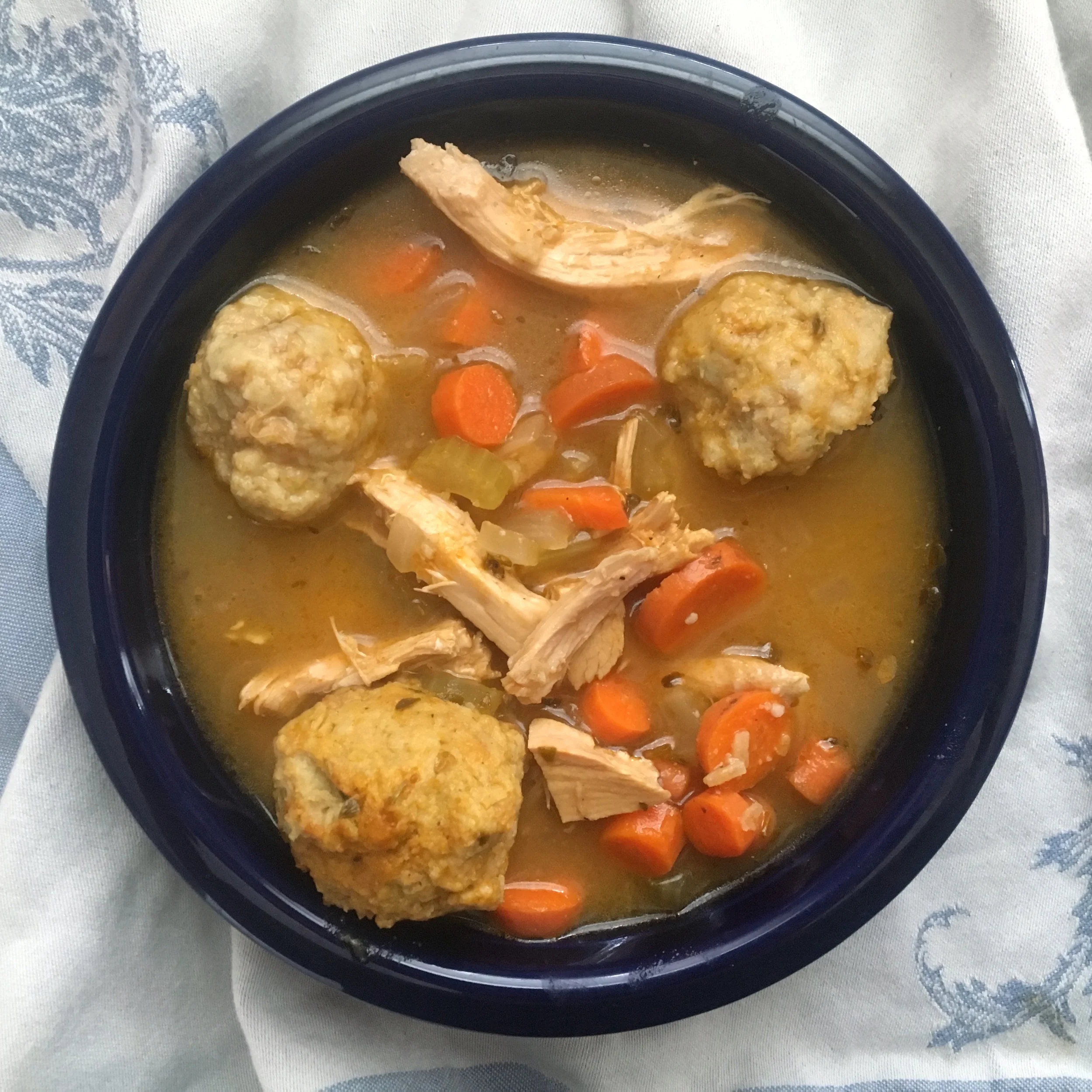 The base of the soup is your standard chicken base of sautéed carrots, onions, and celery, but adding in the stuffing dumplings results in an almost creamy taste to the soup that is just delicious.